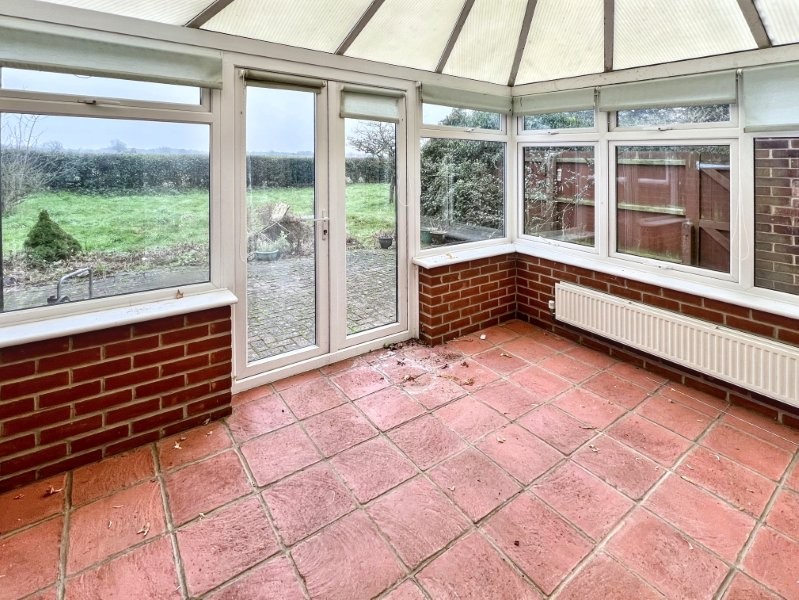 Conservatory – 3/4 double glazed with doors to rear garden, radiator and tiled flooring.